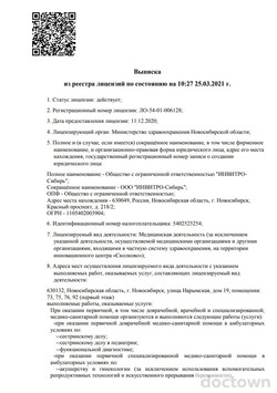 Федеральная сеть ИНВИТРО. Спектр медицинских анализов, выполняемых компанией в клинико-диагностических целях, включает гематологические и общеклинические исследования, исследование гемостаза, биохимический анализ крови на инфекции методов иммуноферментного анализа, коагулологические, гормональные, генетические, иммунологические, микробиологические, гистологические, онкоцитологические исследования, диагностику паразитарных инфекций, ПЦР-диагностику, определение маркеров воспалительного процесса и аутоиммунных заболеваний и лекарственный мониторинг. Помимо лабораторных исследований, в медицинских офисах и диагностических центрах ИНВИТРО можно пройти инструментальные и рентгенологические исследования, обследование методами компьютерной диагностики и, в ряде случаев, получить консультацию врача. Прием проводится по предварительной записи.